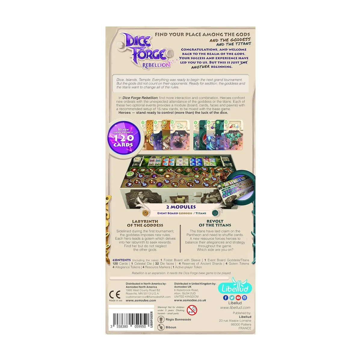 This expansion adds two new modules. With 30 exploit cards, new die faces, and boards, every game is an adventure. Navigate the Goddess’s Labyrinth or battle in the Titans’ revolt. Each game offers unique challenges.