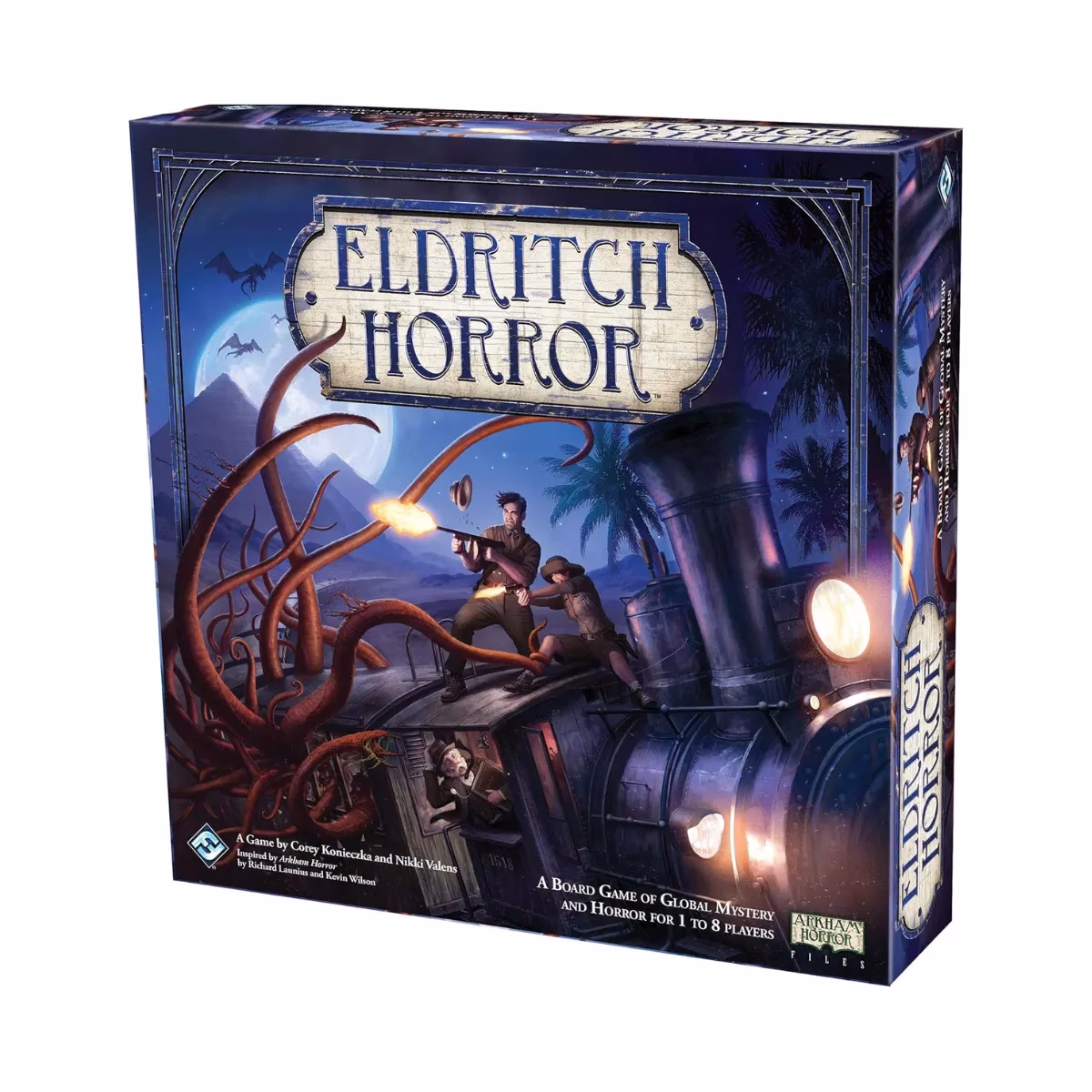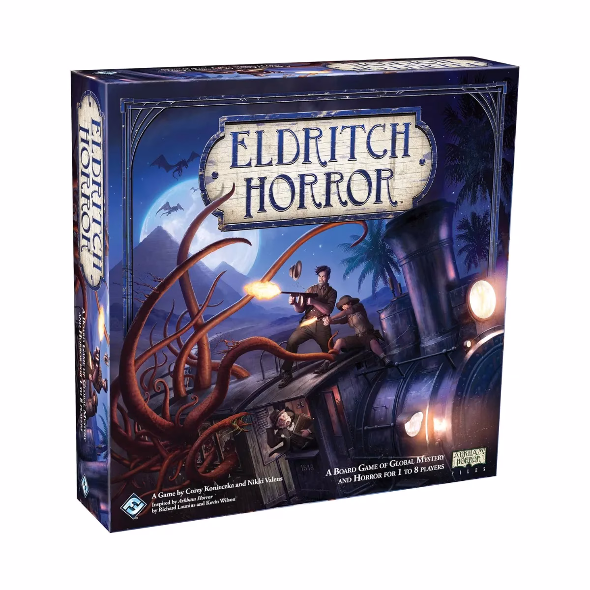 In Eldritch Horror, an ancient evil threatens humanity, and only a brave team of investigators can stop it. Set in the chilling world of the Cthulhu Mythos, this epic co-op game challenges 1–8 players to travel the globe, confront terrifying monsters, and unravel sinister mysteries before the Ancient One awakens and plunges the world into chaos.