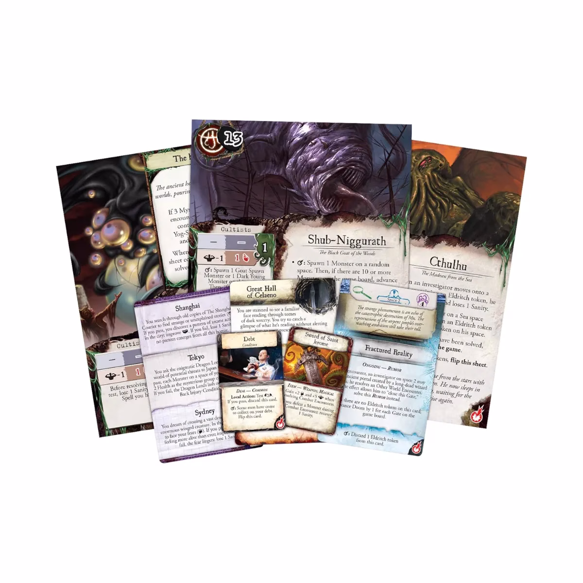 - Solve Mysteries: Each Ancient One has unique Mystery cards. Complete three before time runs out to win.