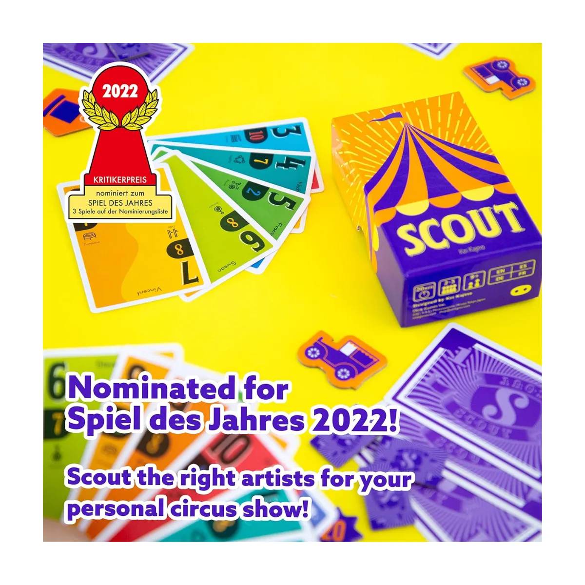 Step right up and get ready for the show of a lifetime! Add SCOUT to your game collection today and prove that you can manage the greatest circus ever. Grab your deck and start scouting your way to victory!