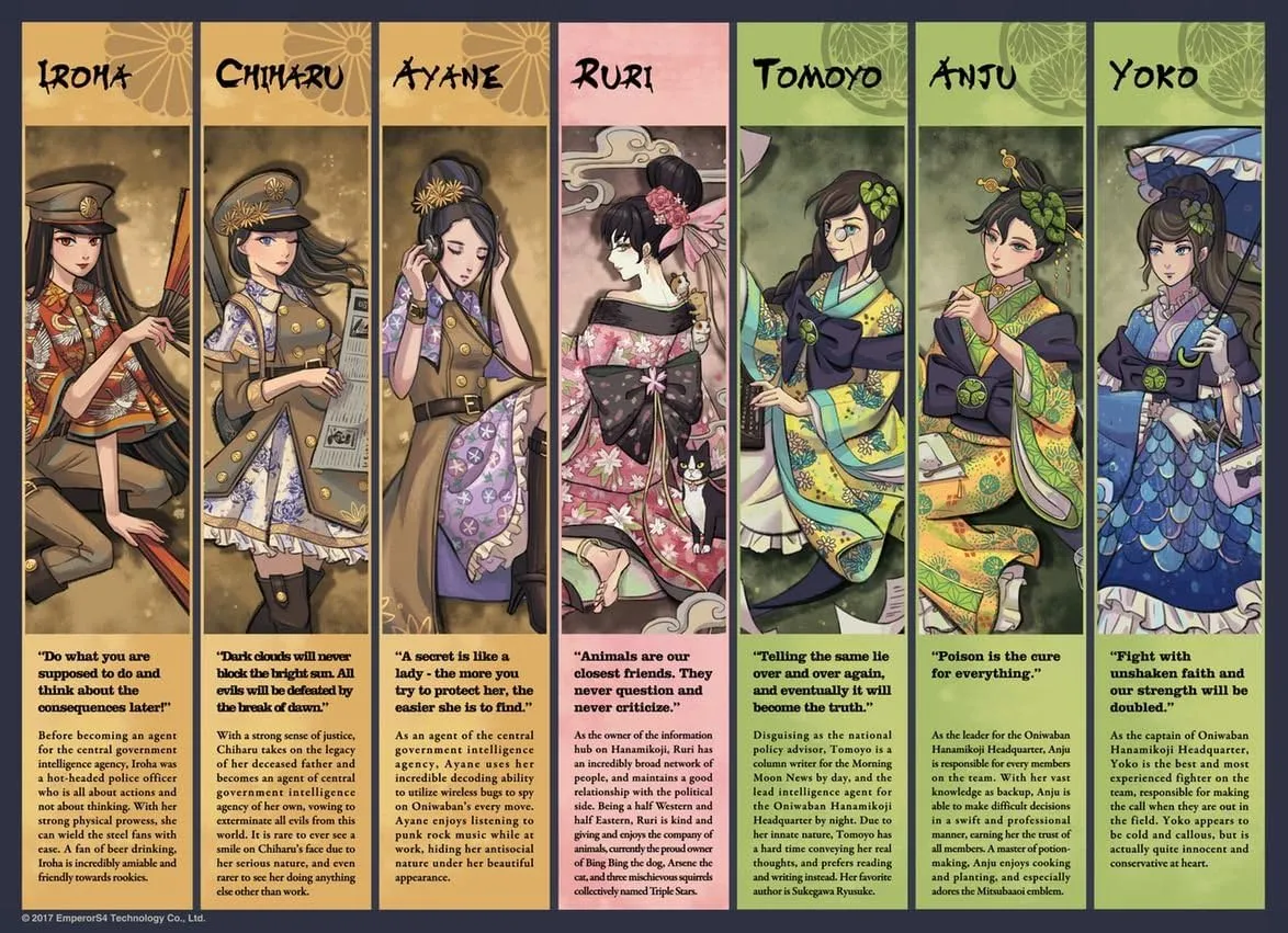 In the year 1867, after the last feudal Japanese military government returned governing power to Emperor Meiji, the Oniwaban, a covert group of spies, continued to secretly protect the Shogun and gather crucial intelligence. Set in the historical backdrop of Hanamikoji, the famous street in Kyoto, this game plunges you into a world of espionage and suspense.
