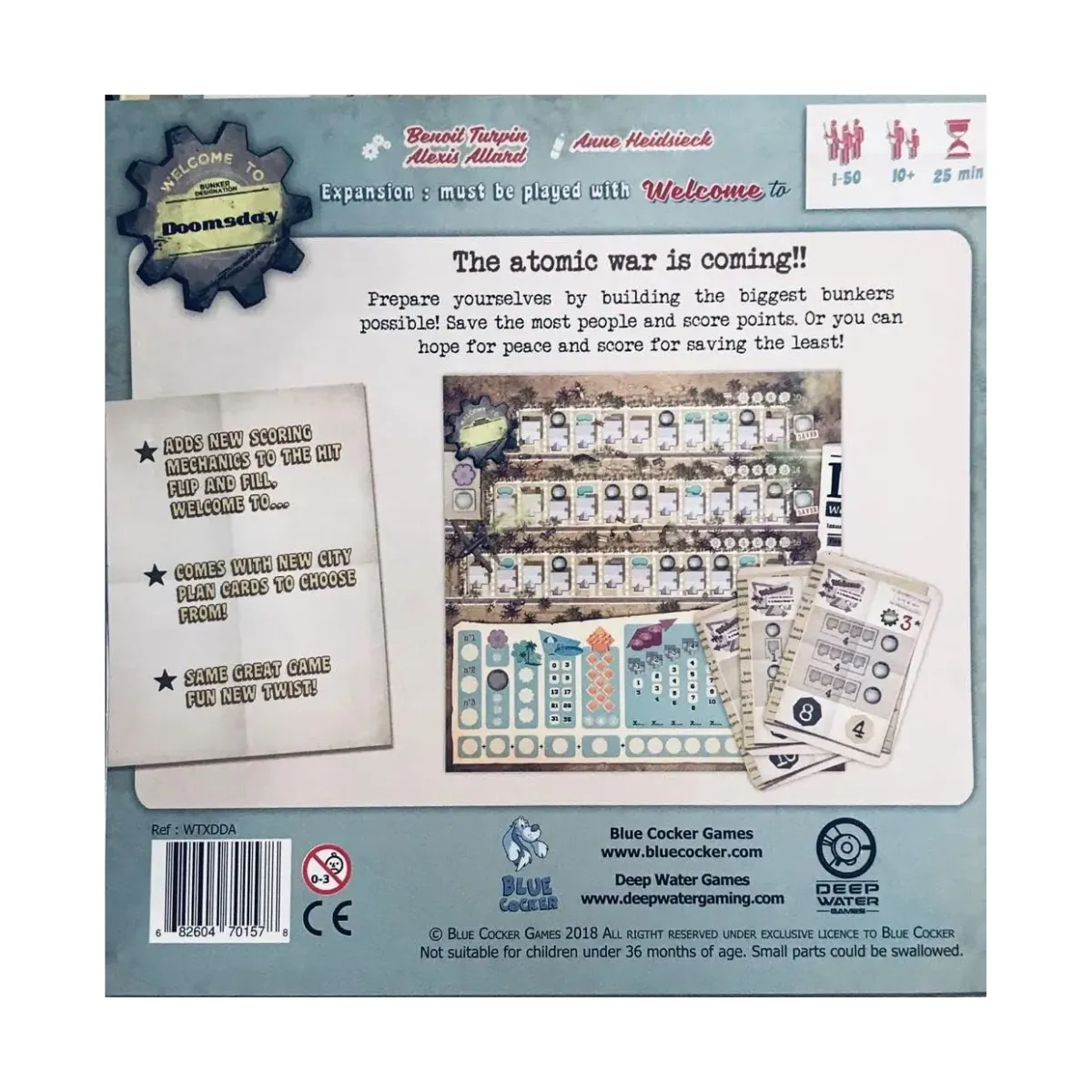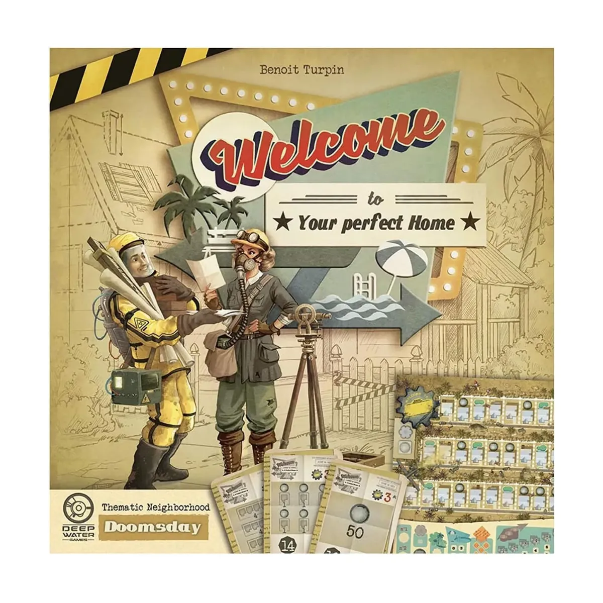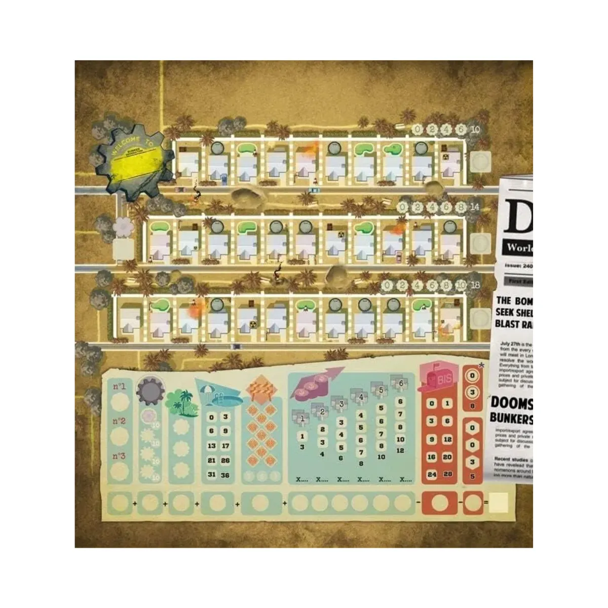 Welcome To… Doomsday Thematic Neighborhood is a captivating city-building board game that takes you back to the 1950s. As the impending threat of nuclear destruction looms, it’s up to you to design and create the most appealing neighborhood while saving as many people as possible. With its unique theme and engaging gameplay, this game will keep you on the edge of your seat as you strategically build houses, fences, parks, and even bomb shelters to protect your residents. Can you be the hero the neighborhood needs?
